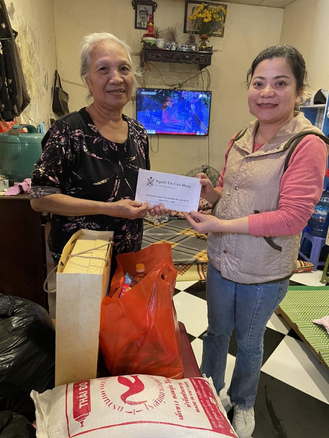 Nhóm NTCM Miền Bắc đến thăm và tặng quà tết cho gia đình chị Thảo, chỉ có bà ở nhà với 02 cháu