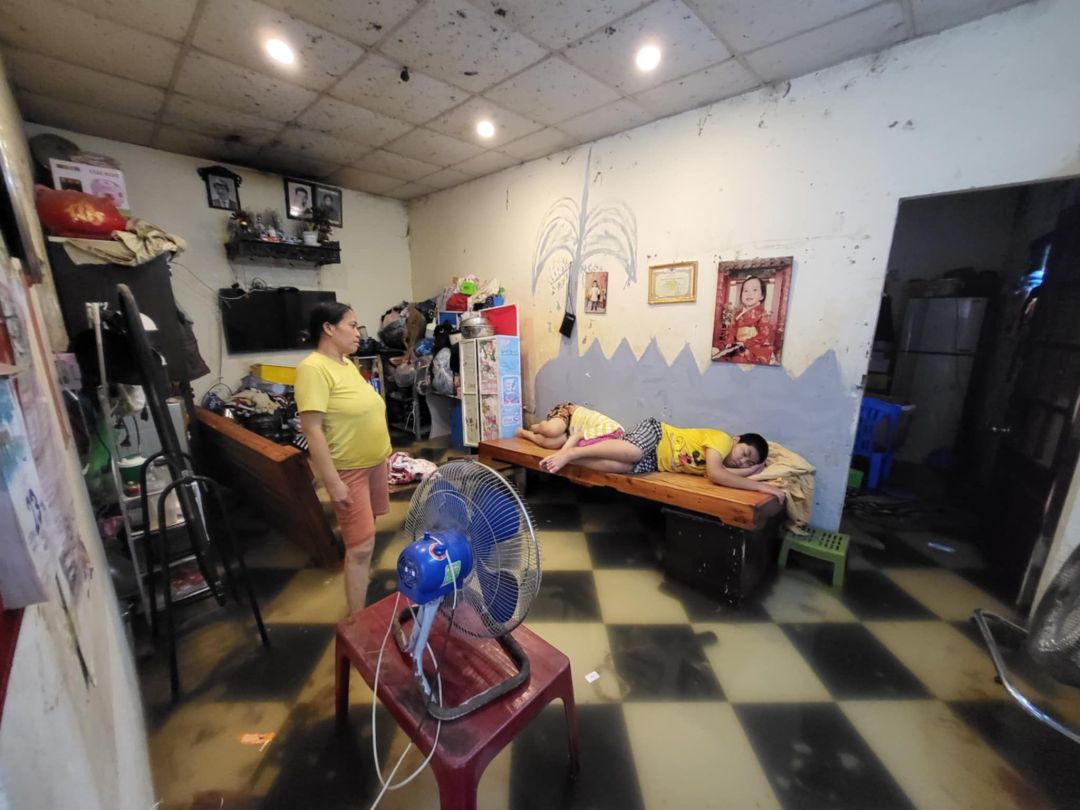 Hoàn cảnh gia đình được sự thông cảm, quan tâm giúp đỡ của hàng xóm tuy nhiên vẫn còn nhiều khó khăn, nhiều tháng không có tiền đóng tiền điện thì được các chị thu tiền hỗ trợ luôn.