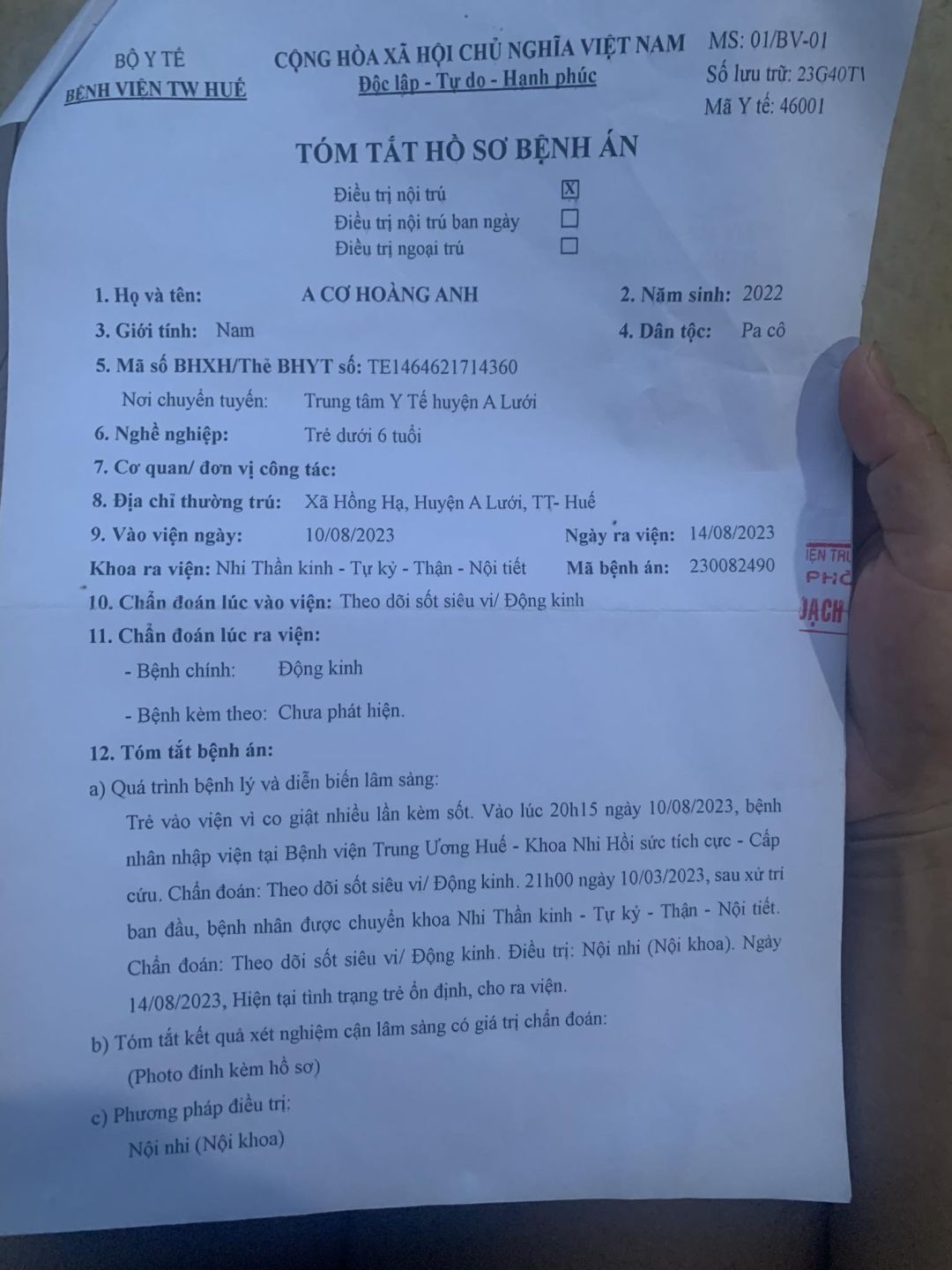 _ A Cơ Hoàng Anh sinh năm 2022 (con) khuyết tật bại não
