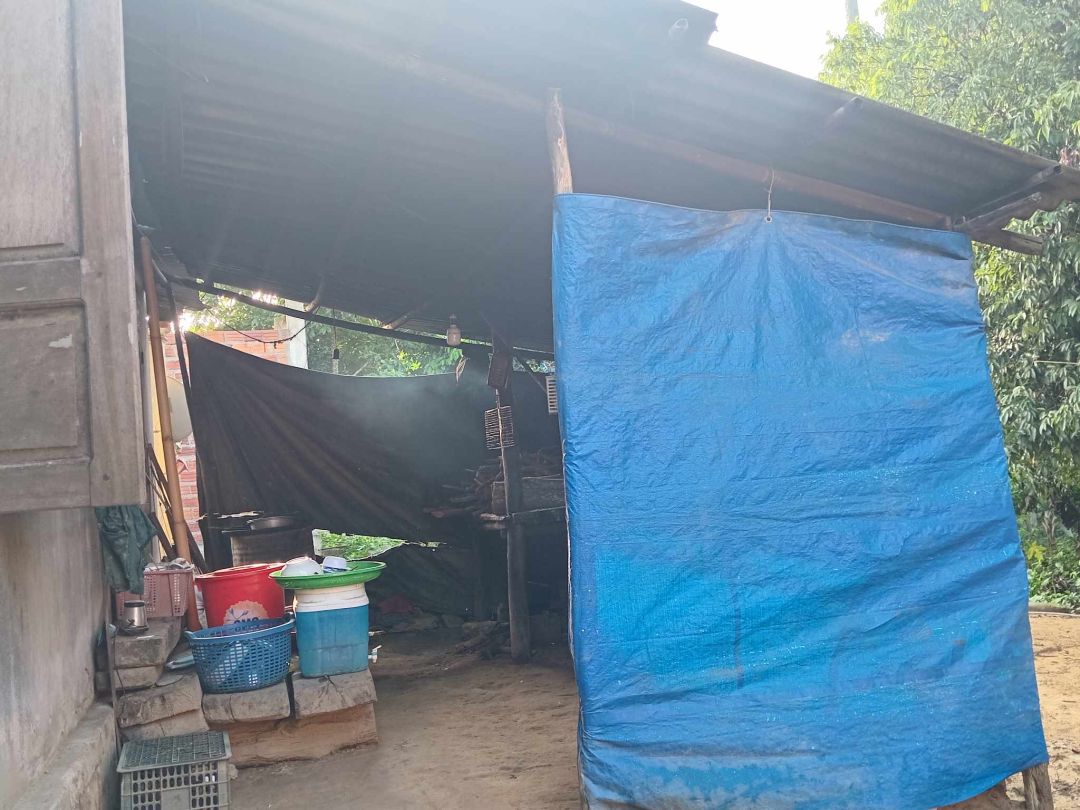 Mặc dù ba hộ gia đình nhưng sống dưới một ngôi nhà gỗ