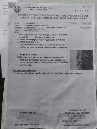 E xin gửi giấy tờ tình hình bệnh của Hiền ạ