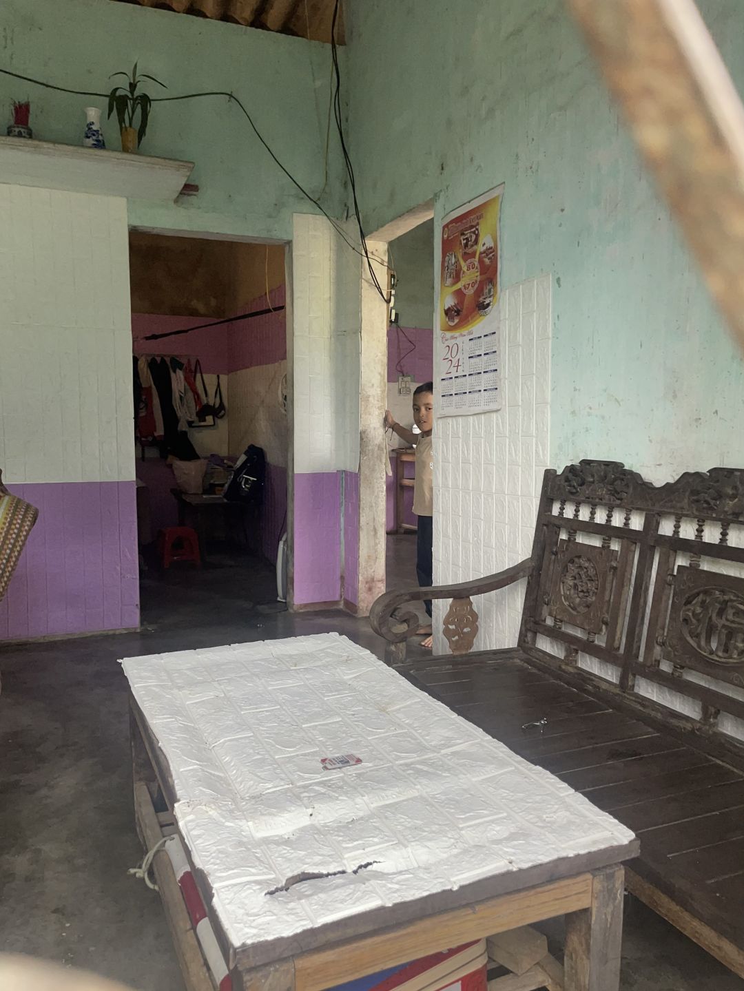 Hiện tại mỗi lần đi em phải xin kinh phí từ họ hàng và bà con . Em giờ hoàn toàn mất sức lao động nên không có thu nhập, khi khoẻ thì trồng miếng rau hay tranh thủ làm ruộng để có gạo, rau ăn uống qua ngày. Hai mẹ con sống trong căn nhà đã xuống cấp tường và mái thấm nước trong những ngày mưa.