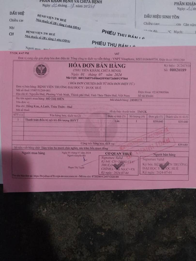 E xin gửi giấy tờ tình hình bệnh của Hiền ạ