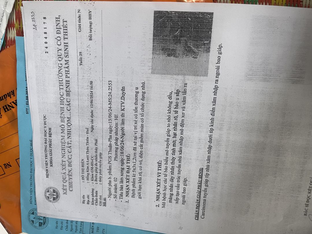 Nhờ @Wendy Duong cung cấp cho cả nhà ít hình ảnh giấy tờ khám chữa bệnh ung thư tuyến giáp, hóa đơn viện phí đã chi trả dùm nhé !