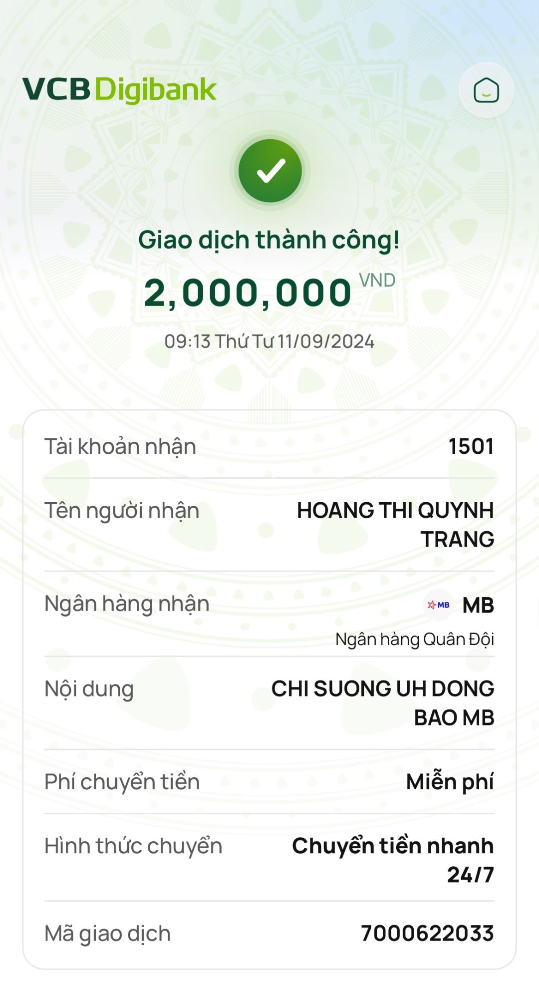 Mình xin góp 1 tr, dã chuyển vào tk Quỹ