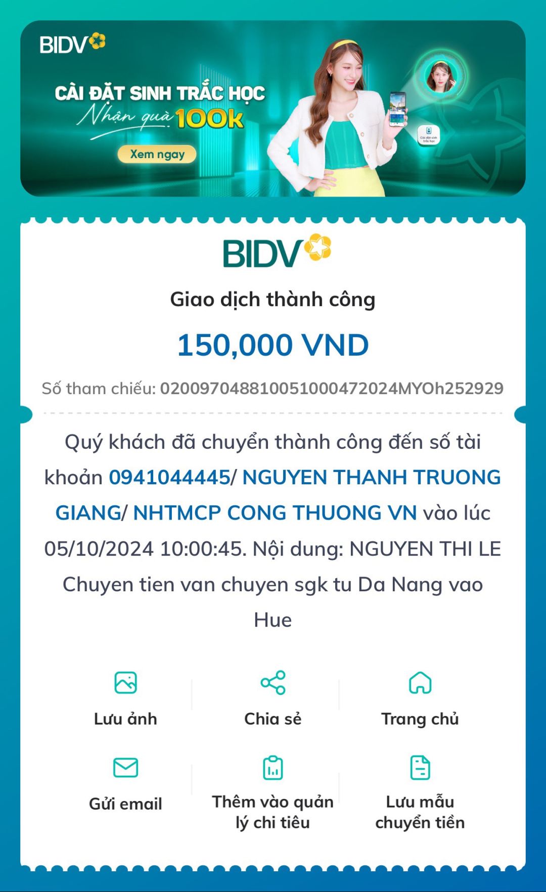 Thủ quỹ chương trình đã chuyển trả cho bạn Giang