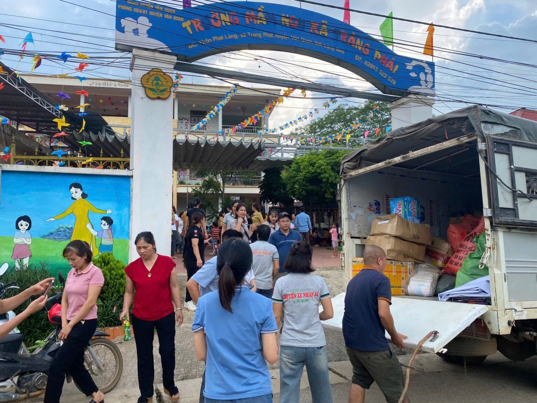 Nhóm đã đi vào bản Lùng Thúm để chuyển tải tình cảm của mọi người tại đây. Nhóm cũng đã ghé trường Mầm Non Tràng Phái để chuyển bánh, gạo, sữa và dụng cụ học tập cho các con và quà cho các giáo viên. Nhóm tiếp tục đi chuyển lên Lương Năng để tặng quà và dụng cụ học tập cho các em ảnh hưởng trực tiếp bão lũ.