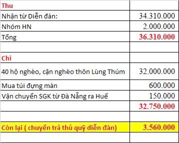 Hiện theo thống kê chương trình còn thừa 3.650.000đ đã kết chuyển về quỹ.