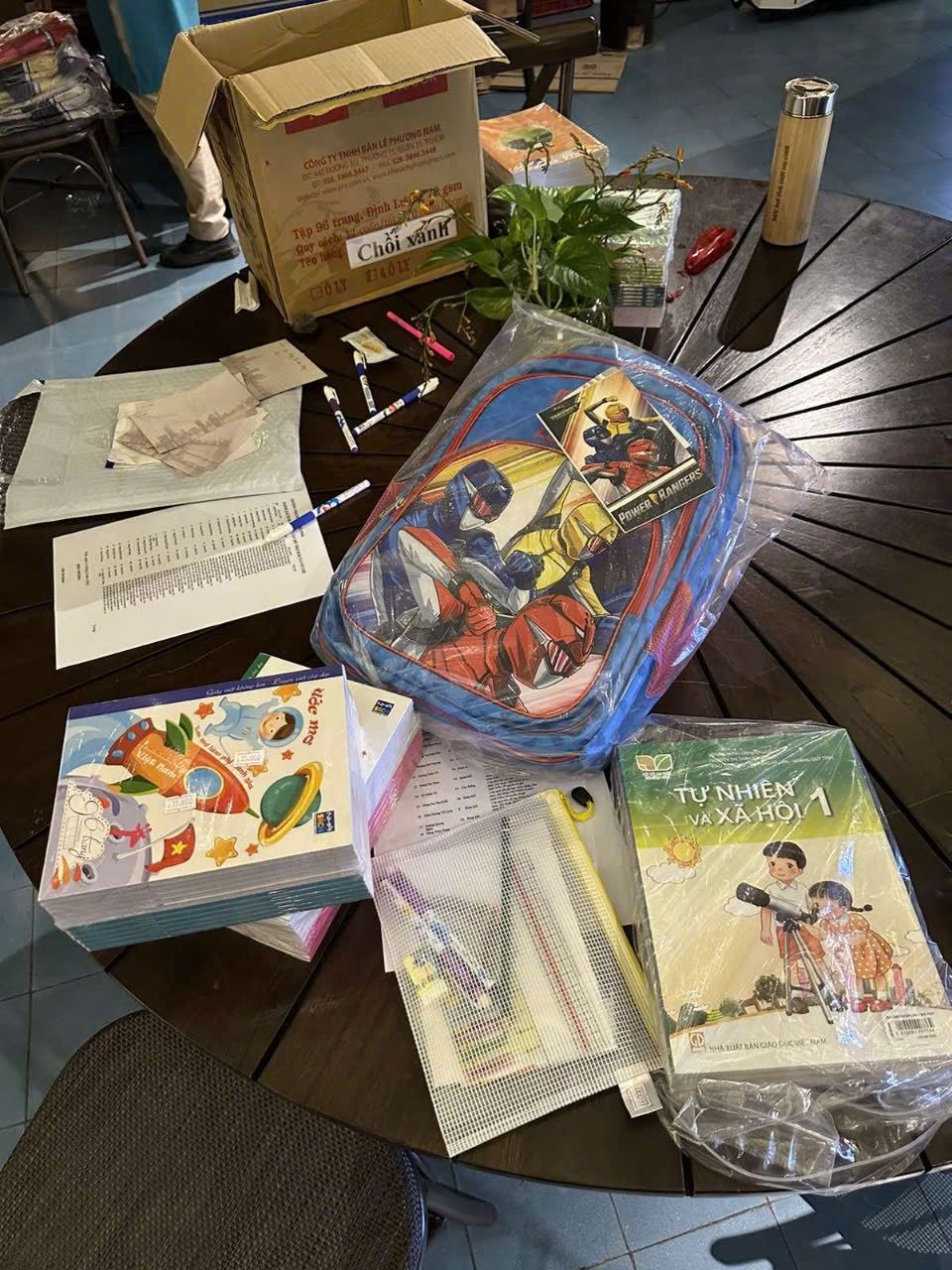 Sách vở cặp mới đã note cho đội và chưa báo số vì sáng nay các bạn mới bổ sung thêm và báo số sau (tối qua 12h đêm TNV vẫn đang đóng hàng gởi đội, ảnh)