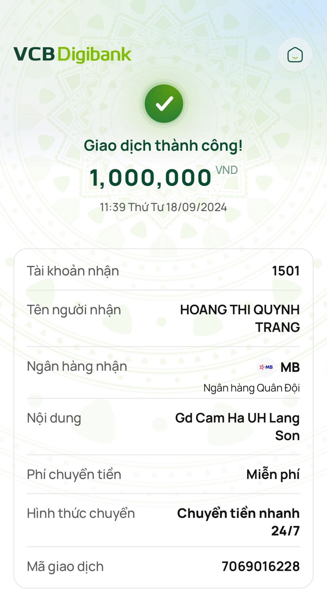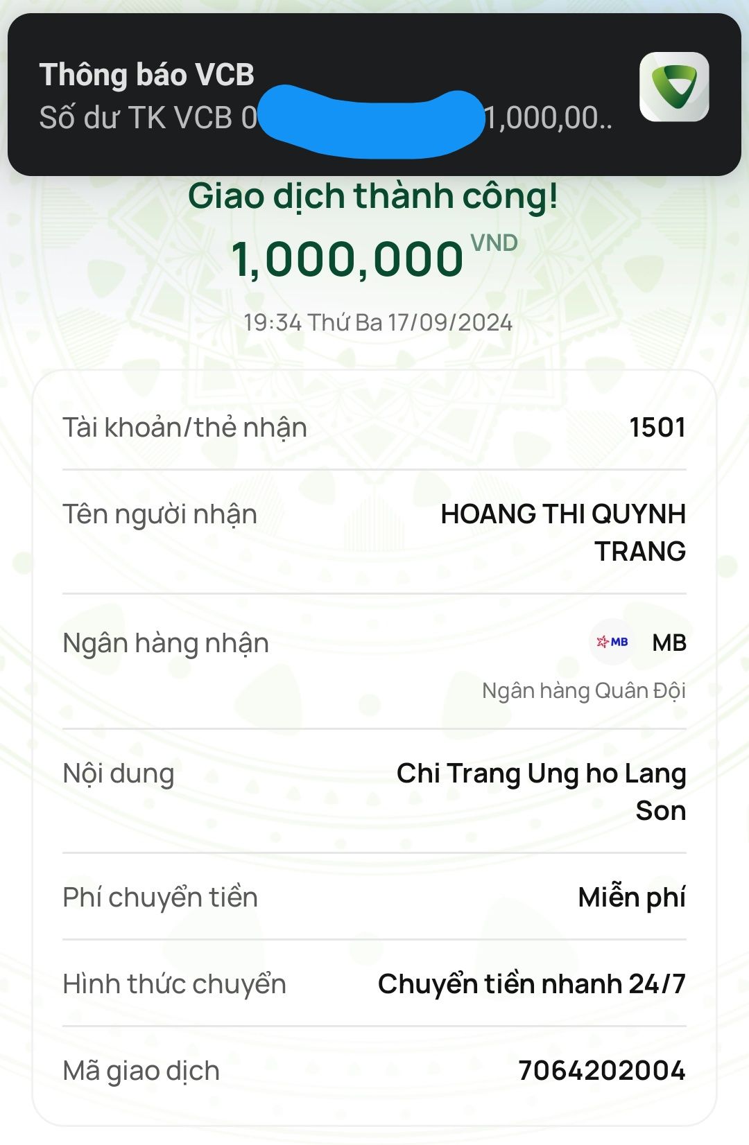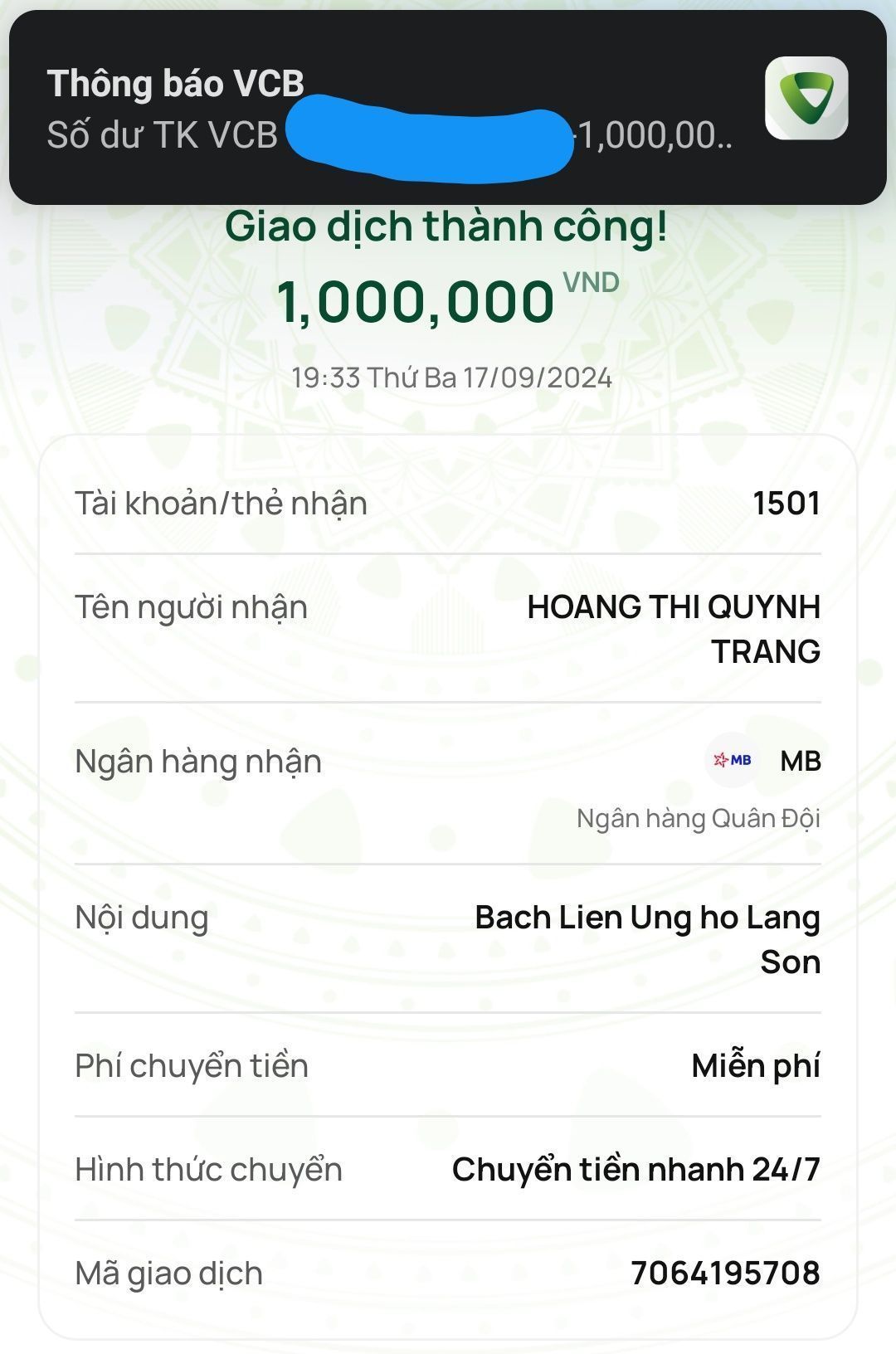Tieuhuongduong đã chuyển khoản tiền ủng hộ Lạng Sơn: