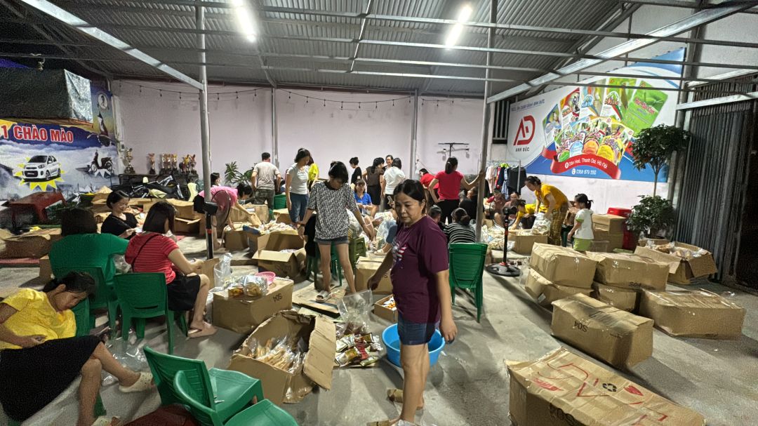 Hình: đêm hôm kia đội miền Nam kiểm từng cái cặp mới đóng gói.