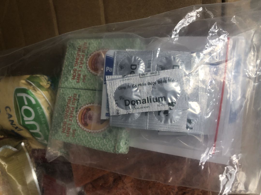 Đội cũng nhận được túi thuốc không để đơn với khoảng hơn 600 lọ dầu gió (chưa kiểm đếm được).