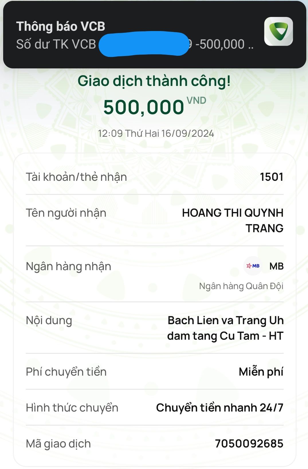 Michele_du và Gia đình xin được ủng hộ đám tang của cụ Tâm 500,000₫.