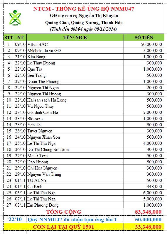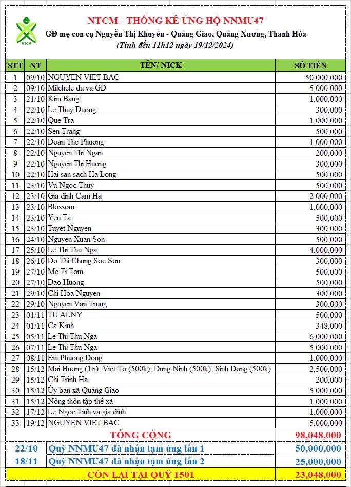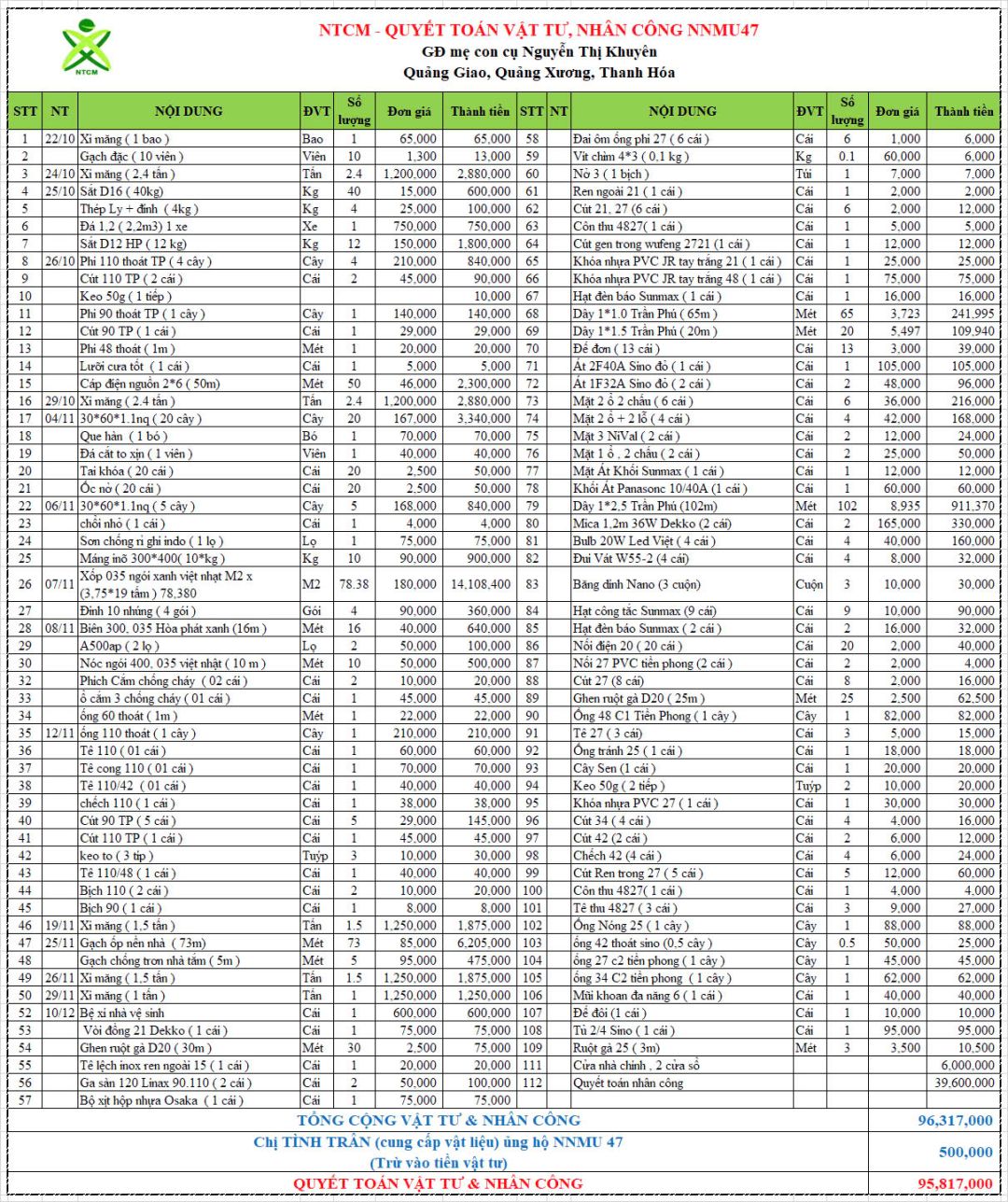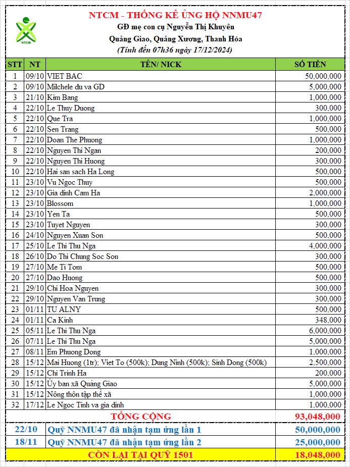 Một lần nữa, NTCM chân thành cảm ơn sự đồng hành của chính quyền địa phương, sự chung sức các MTQ và thành viên NTCM, đặc biệt sự ủng hộ tài chính lớn nhất từ gia đình Nguyen Viet Bac. Bên cạnh đó NNMU47 cũng nhận được bản vẽ thiết kế miễn phí từ đội ngũ HTCons và tài trợ sơn từ Công ty Tân Á Đại Thành.