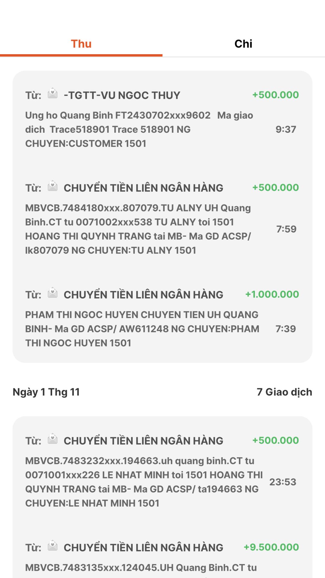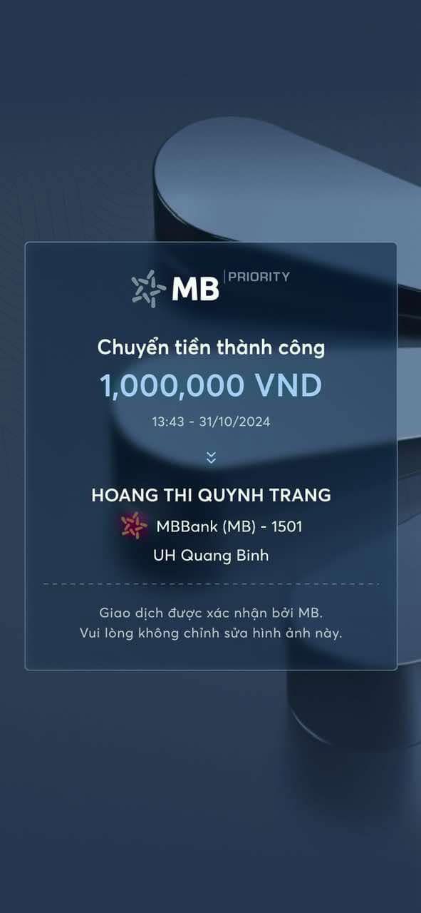 Tính đến 11h hôm nay qua tk quỹ chung 1501 MB Bank cho chương trình Quảng Bình như sau: