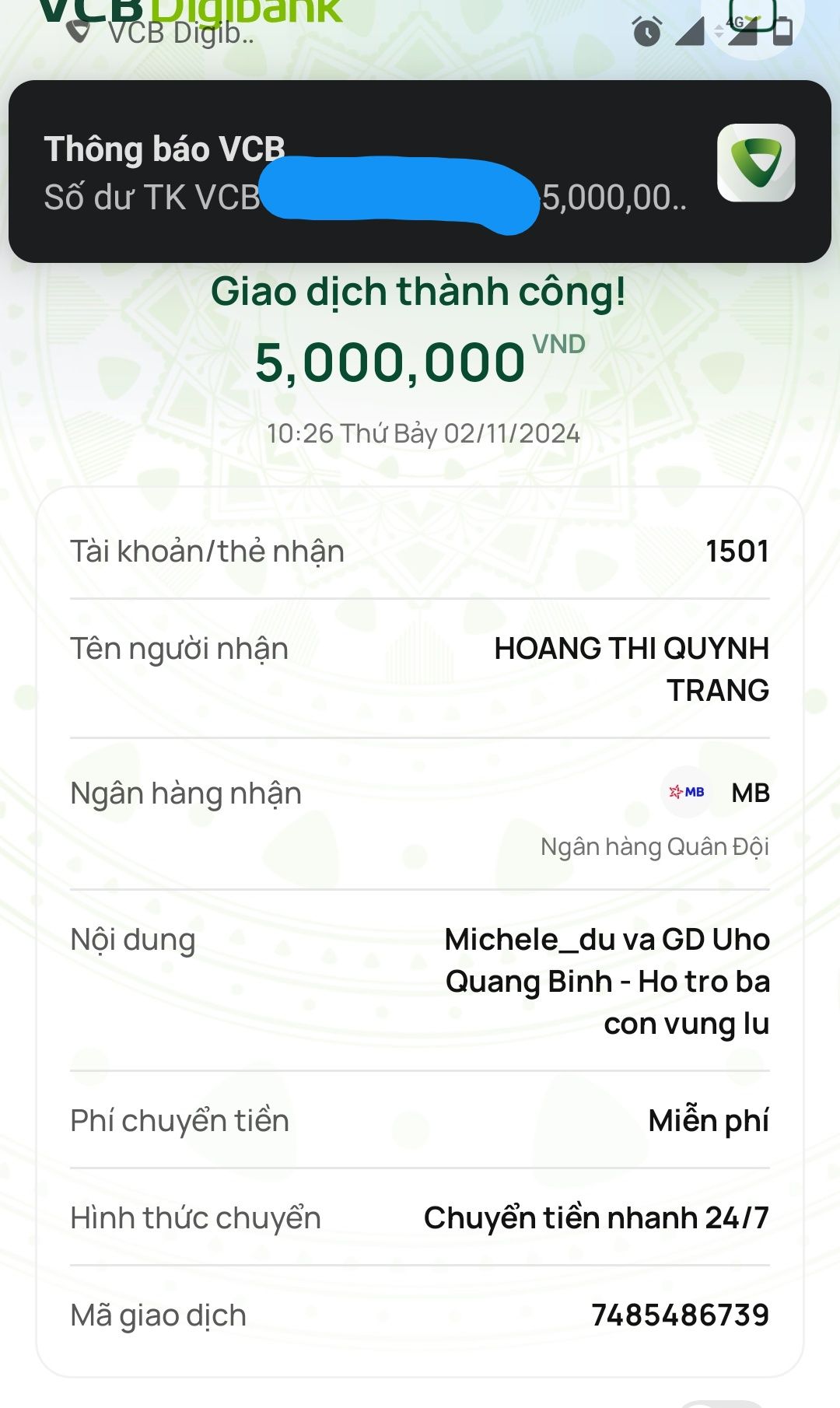 Bạch Liên và chị Trang đã chuyển tiền ủng hộ !