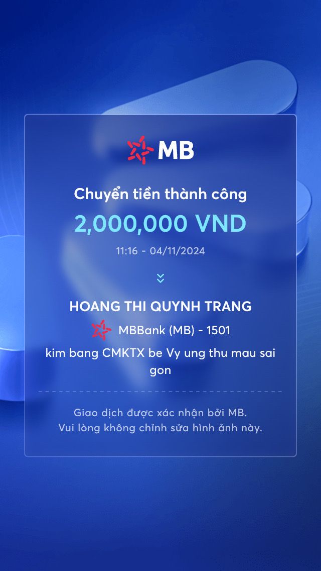 Minh xin CMKTX đến bé Vy 2tr, đã chuyển tiền vào quỹ.