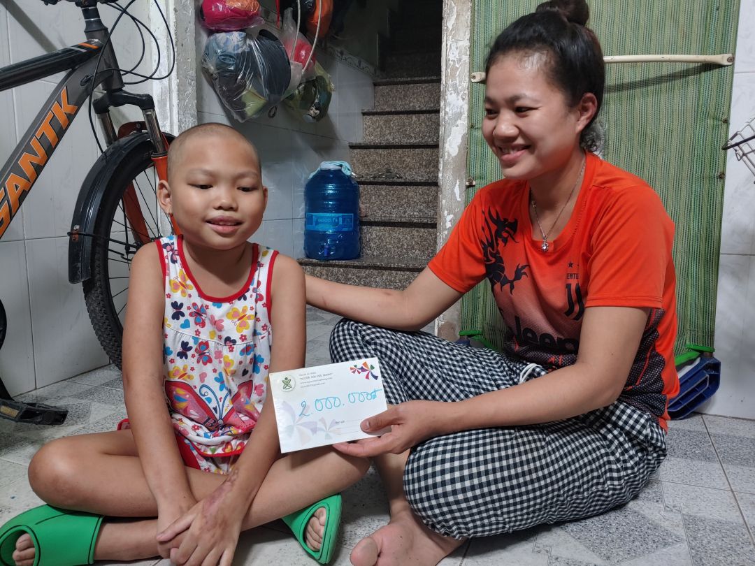 Gia đình cháu Vy vốn chỉ đủ ăn, cha làm nghề lái xe ôm, còn mẹ phụ bán cá ngoài chợ cùng dì. Khi Vy mắc phải căn bệnh này, chi phí điều trị trở thành gánh nặng lớn. Hiện tại cháu đang trong giai đoạn đầu điều trị và sắp phải vào toa điều trị thứ hai. Để lo liệu chi phí này, gia đình đã phải đi vay mượn từ người quen, tới đâu hay tới đó. Vy có 3 anh chị em đều trong độ tuổi đi học, nên gánh nặng càng thêm nặng.