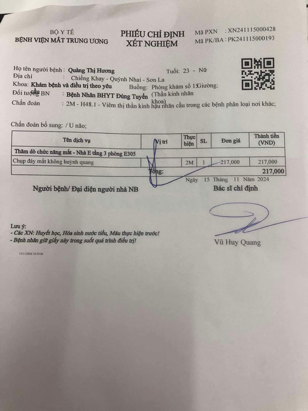 Hôm nay chiếu chụp hết 2.400k. Bạn của anh 6x uh 1.000k và HBL uh 400k và HBL đã trao cho gđ lúc trưa nay.