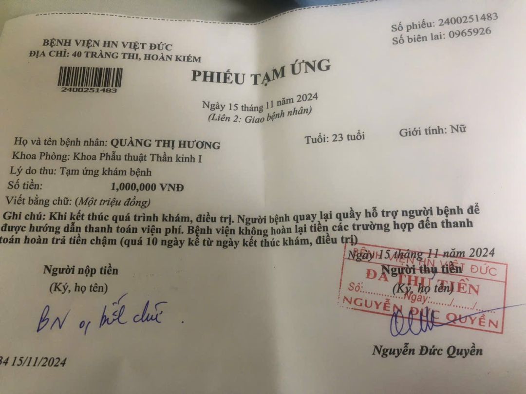 5h chiều hôm qua, nhờ sự dẫn đường, hỗ trợ làm thủ tục của bác nam giới đi cùng nên cháu Hương đã được nhập viện Việt Đức để chờ lịch mổ.