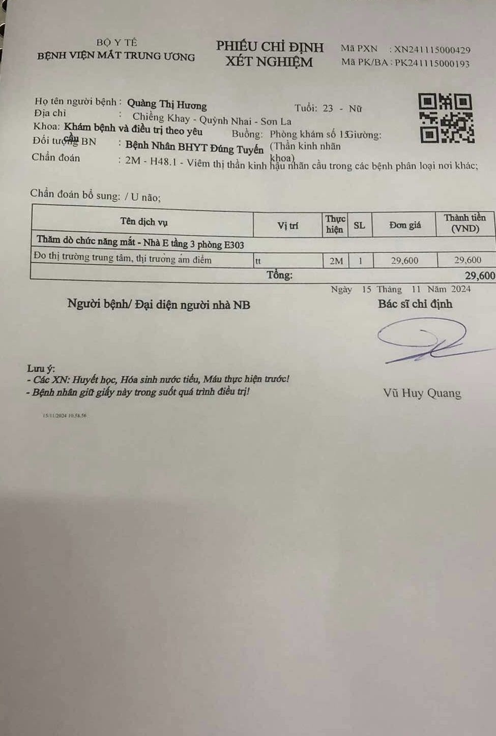 Hôm nay chiếu chụp hết 2.400k. Bạn của anh 6x uh 1.000k và HBL uh 400k và HBL đã trao cho gđ lúc trưa nay.