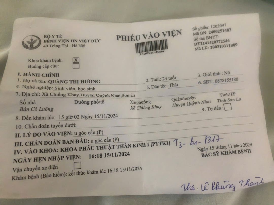 5h chiều hôm qua, nhờ sự dẫn đường, hỗ trợ làm thủ tục của bác nam giới đi cùng nên cháu Hương đã được nhập viện Việt Đức để chờ lịch mổ.