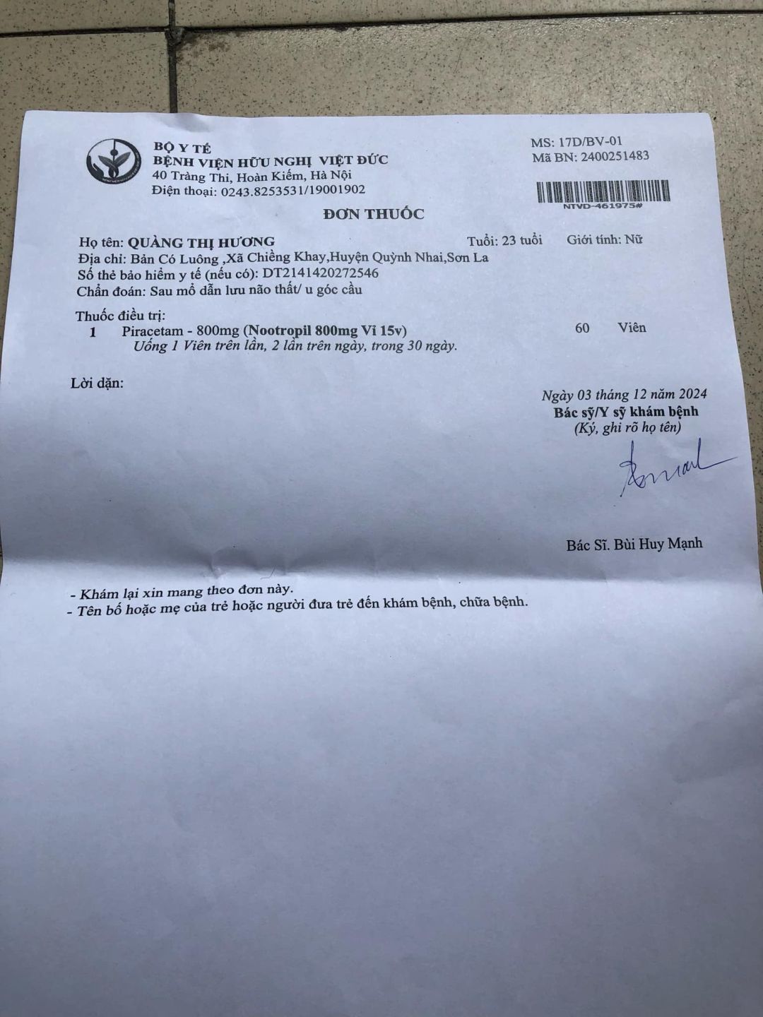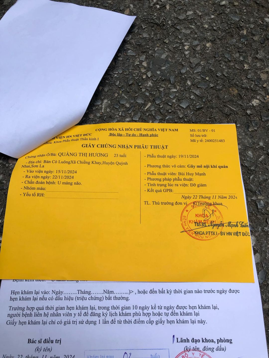 Có Phát sinh 1 chuyện buồn hơn nữa như sau:  EM ruột cháu Hương, tên là QUYẾT cũng bị đau đầu nhiều. Hôm Quyết đang chăm chị gái ở Viện SL thì đau quá, nên đã khám luôn tại BV Sơn La.