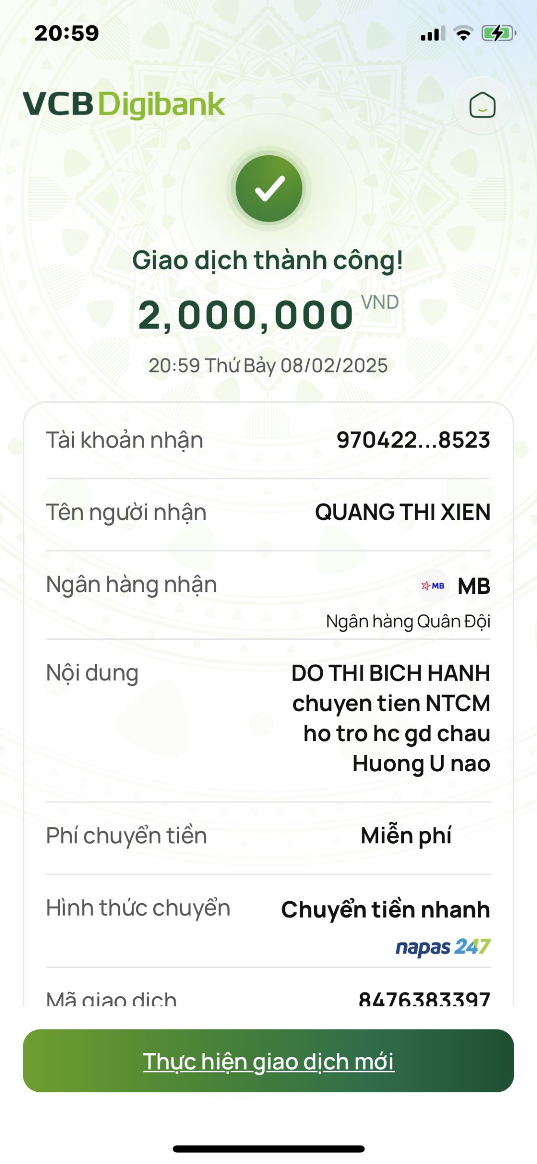 @trangvitgioi : Em chuyển 10,000,000đ tới @haybanglong để chị ấy gửi tới cháu Hương dùm nhé.
