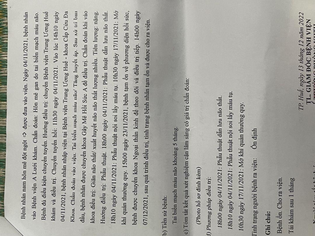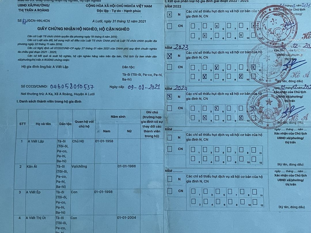 Ông Lập bị tai biến nằm liệt giường đã hơn 2 năm nay. Ông Lập sinh năm 1958, ông bị tai biến vào năm 2021. Khi người nhà phát hiện ông bị tai biến thì có đưa đi cấp cứu đến bệnh viện A Lưới và được bệnh viện chuyển đến bệnh viện Trung Ương Huế. Ông được bệnh viện chẩn đoán bị tai biến mạch máu não/tăng huyết áp. Sau đó bệnh viện cho ra viện và có giấy hẹn tái khám nhưng hoàn cảnh gia đình khó khăn không có kinh phí nên không thể đưa ông đến bệnh viện để tái khám được. Sau khoảng thời gian gần 1 năm không được tái khám thì ông bị biến chứng liệt tay phải. Từ lúc ông bị tai biến đến giờ thì ông không nhận được trợ cấp từ bất kỳ cơ quan tổ chức nào cả.