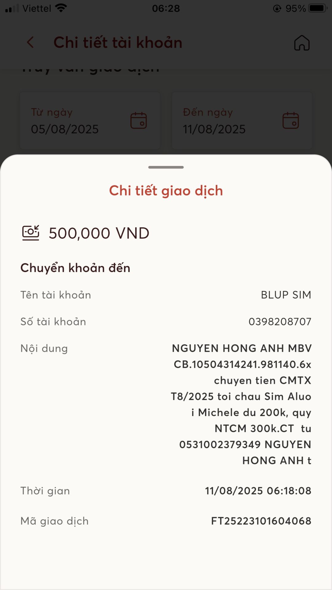 6x đã chuyển tiền CMTX cháu @Blup_sim  tháng 8/2025 nhé ( Michele_du và Gia đình - 200,000₫ , Quỹ NTCM - 300,000₫ )