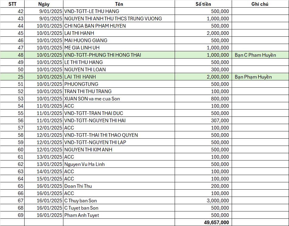 Tiền chuyển về cho thủ quỹ Hiền Linh: 49.657.000 đ