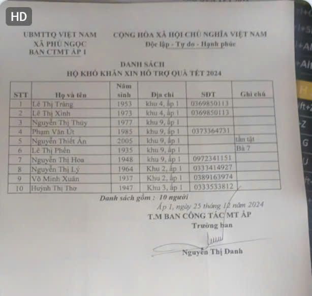 Danh sách các hộ nghèo , rất khó khăn, hoàn cảnh đặc biệt :
