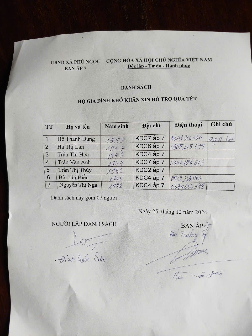 Danh sách các hộ nghèo , rất khó khăn, hoàn cảnh đặc biệt :