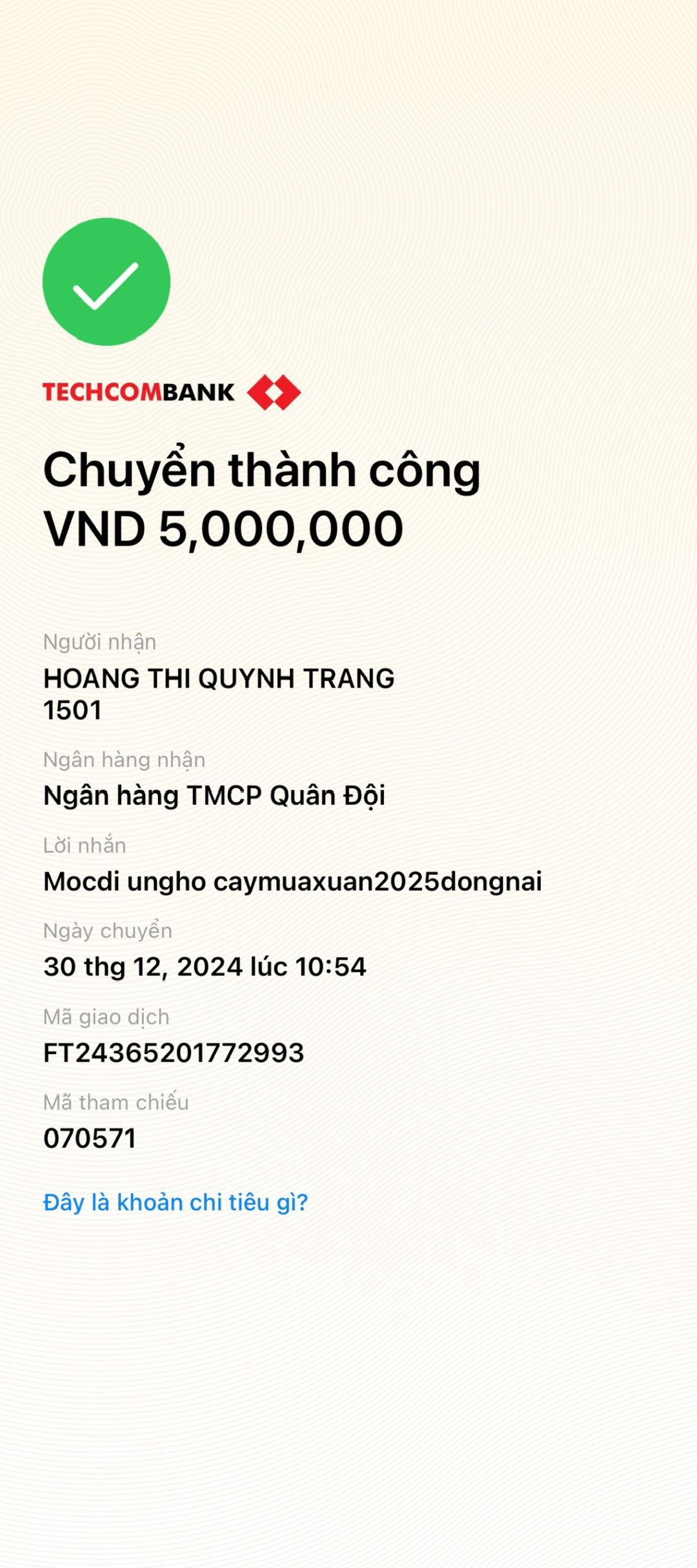 Mọi đóng góp xin gửi về theo số tài khoản 1501MB Bank HCM - Hoàng Thị QUỳnh Trang. Nội dung: caymuaxuan2025dongnai
