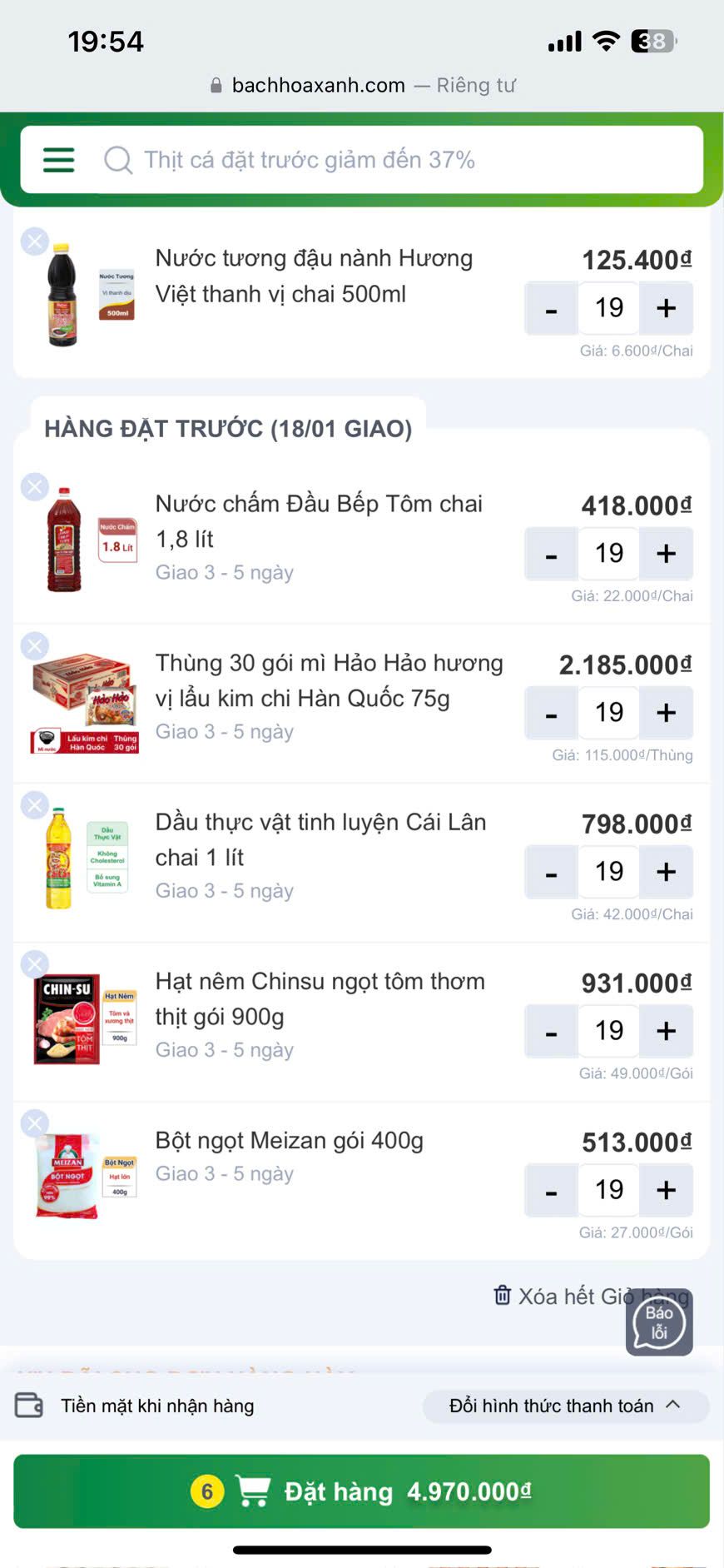 Mình xin báo cáo cập nhật thu chi như sau: Đã nhận từ quỹ 6500k. Đã mua như yếu phẩm ở Bách Hóa Xanh hết 4970k, mua ngoài đường Cô Ba hết 475k, lì xì 20 suất hết 1000k.