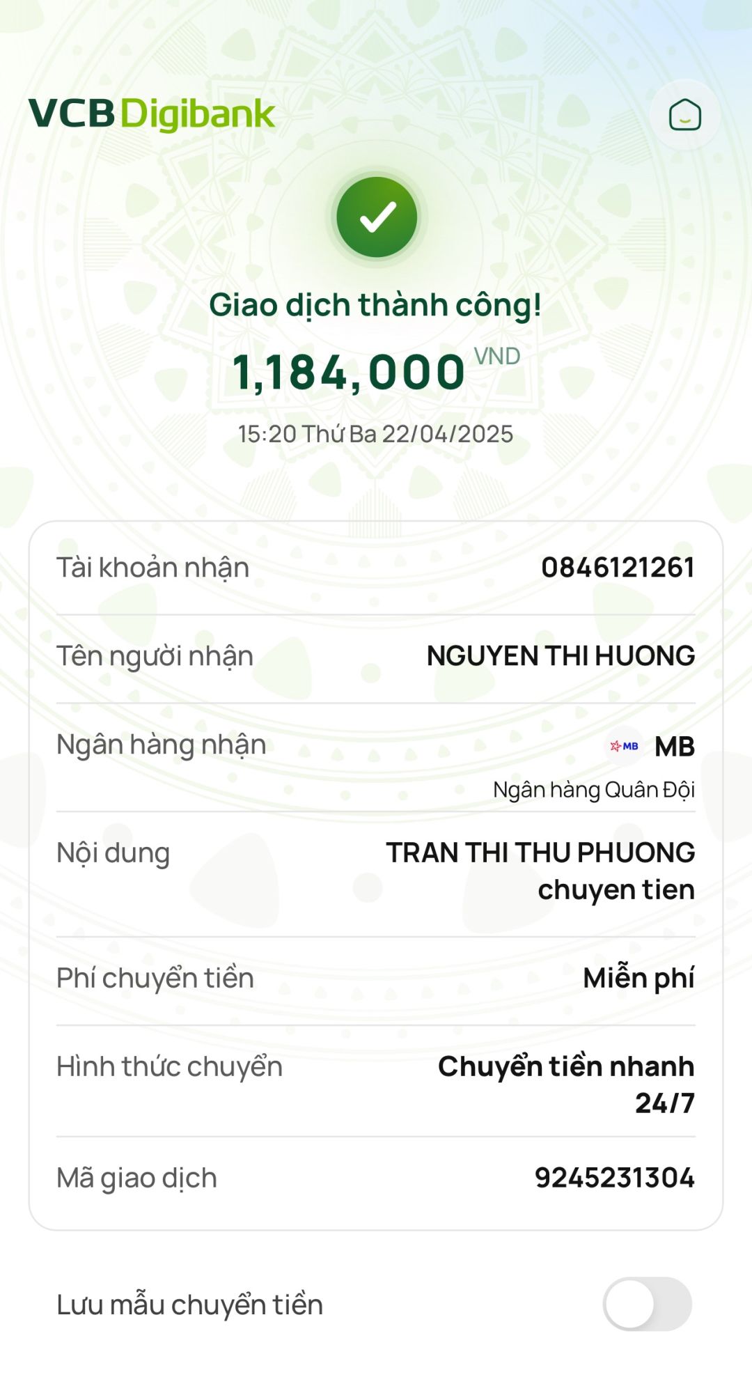 Quỹ đã thực hiện. Hoaxuongrong kiểm tra giúp Vịt nha. Thanks.