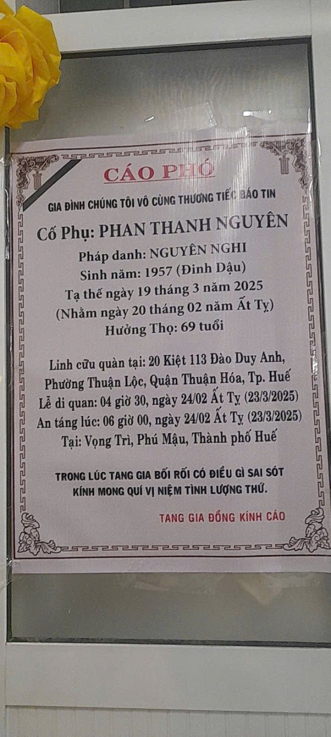 Ps: Gởi anh @banbe6x : Chương trình tang lễ chi tiết ở cáo phó đã đưa bài trước đó rồi anh.