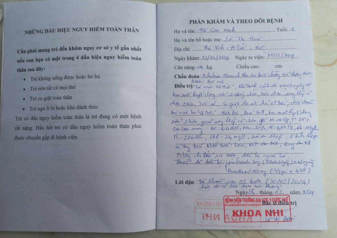 Em gái của cháu Hồ Cao Minh tên là Hồ Yến Nhi.cháu được 5 tháng tuổi.từ khi sinh ra cháu đã bị bệnh và bệnh viện A lưới chuyển về bệnh viên khoa nhi Trung Ương Huế.bác sĩ đã chẩn đoán,nghi ngờ và đang theo dõi cháu mắc các bệnh : Nhiễm khuẩn sơ sinh,Viêm màng não mủ,Tăng sản thượng thận bẩm sinh,Hạ đường huyết,Rối rối loạn chuyển hoá bẩm sinh.mỗi lần lên cơn đau.cháu bị sốt và co giật.mới đây vào tối ngày 25/06/2025.vào lúc 12 giờ đêm cháu lên cơn sốt co giật,gia đình đưa cháu xuống bệnh viện A lưới cấp cứu và được bác sĩ chuyển về bệnh viện Trung ương Huế,tình trạng sốt và co giật cháu bị thường xuyên và phải cấp cứu về bệnh viện Trung Ương Huế. Hiện cháu ở phòng 305, khoa Nội tiết- thần kinh- tự kỉ