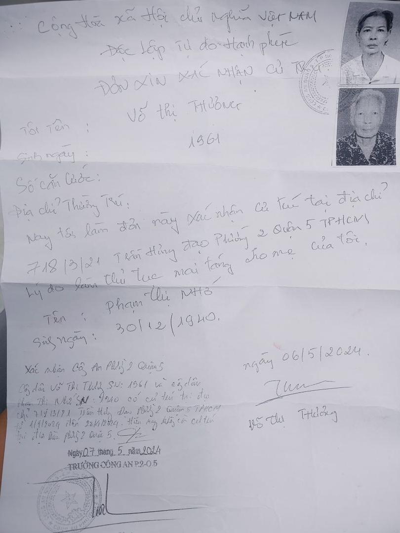 Bác Thương sinh năm 1961 đã theo mẹ lưu lạc từ Huế vào Sài Gòn từ trước năm 1975. Tuy nhiên tới thời điểm hiện tại không có giấy tờ tùy thân.