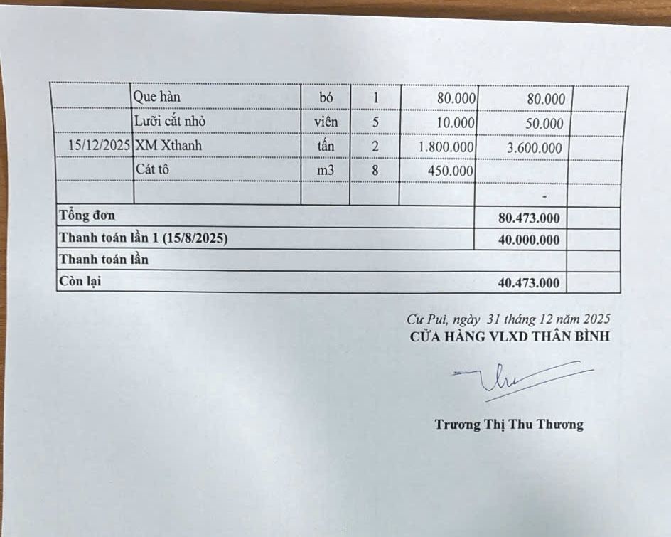 Để đẩy nhanh tiến độ công việc cũng như mua VLXD kịp thời, vì vậy hôm nay xin Ban quản trị cho tạm ứng kinh phí lần 1 để chi trả cho chủ cơ sở VLXD