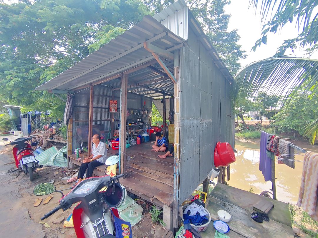 đang sống cùng 2 đứa cháu ruột ở căn nhà tạm cất dưới mé sông.
