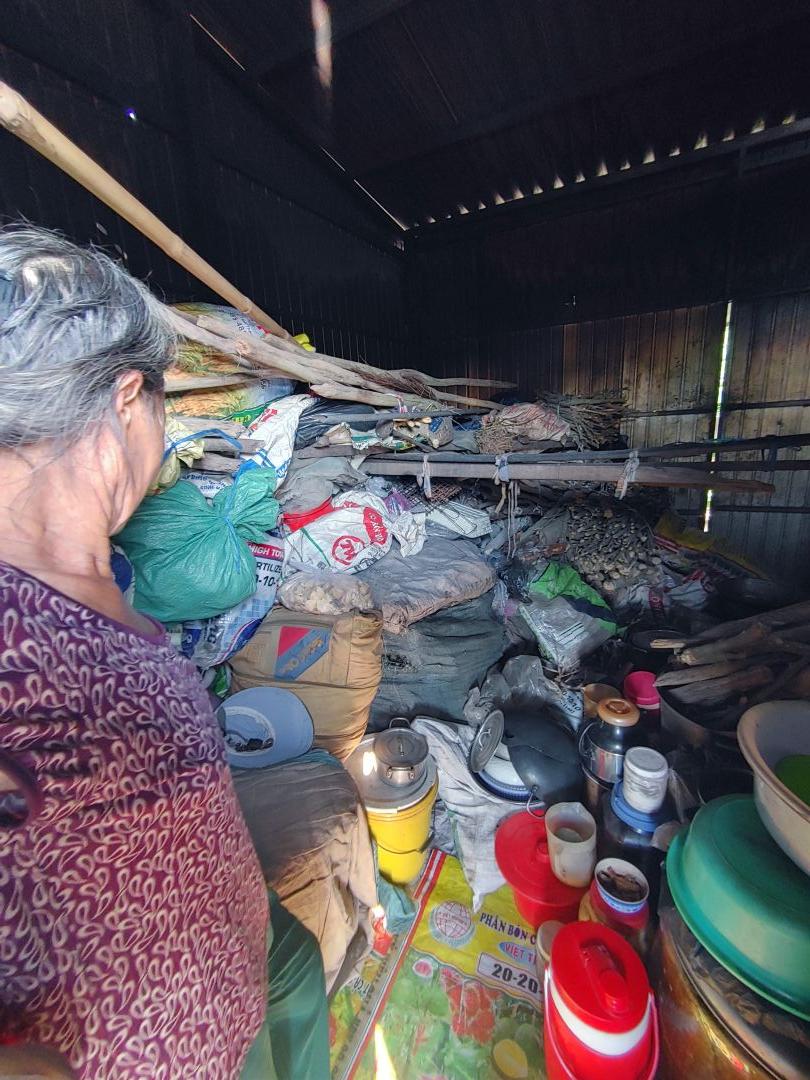 Mọi thứ bà đều mang vào trong nhà để cất, ngoài củi ra thì dường như chẳng còn gì, chỉ còn chừa đủ chỗ nằm ngủ, bếp củi bà cũng mang vào trong nhà, mọi người khuyên bảo nhưng bà không nghe, nguy cơ cháy rất cao..
