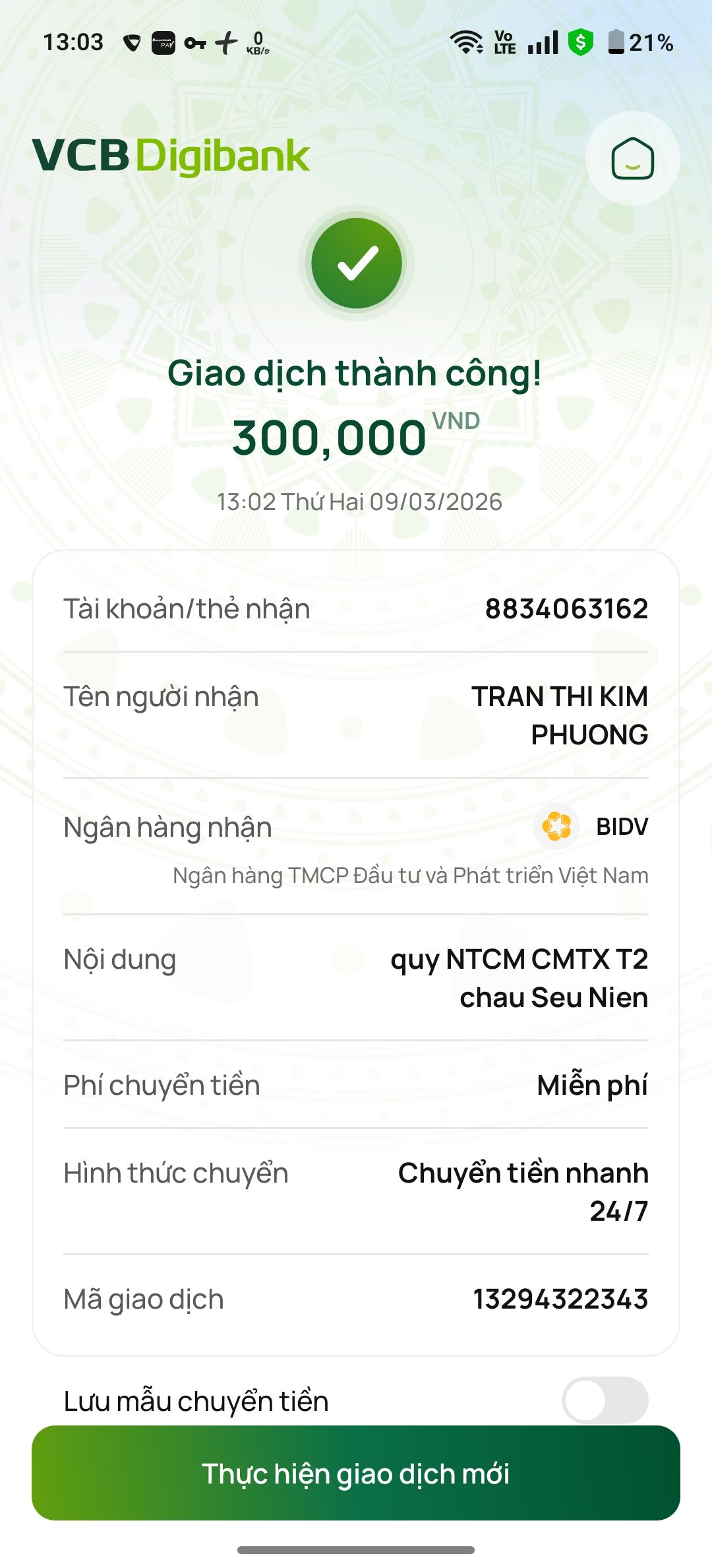 Sau nhiều lần kêu gọi vẫn chưa nhận được sự hỗ trợ, nên sau 72 giờ tiếp theo hoàn cảnh vẫn chưa nhận được sự hỗ trợ thì chúng ta xuất quỹ NTCM để trao CMTX cho hoàn cảnh của Bà, 300.000đ/tháng trong 3 tháng bắt đầu từ tháng 12/2025 đến tháng 02/2026, rất mong có được sự chung tay giúp đỡ của mọi người