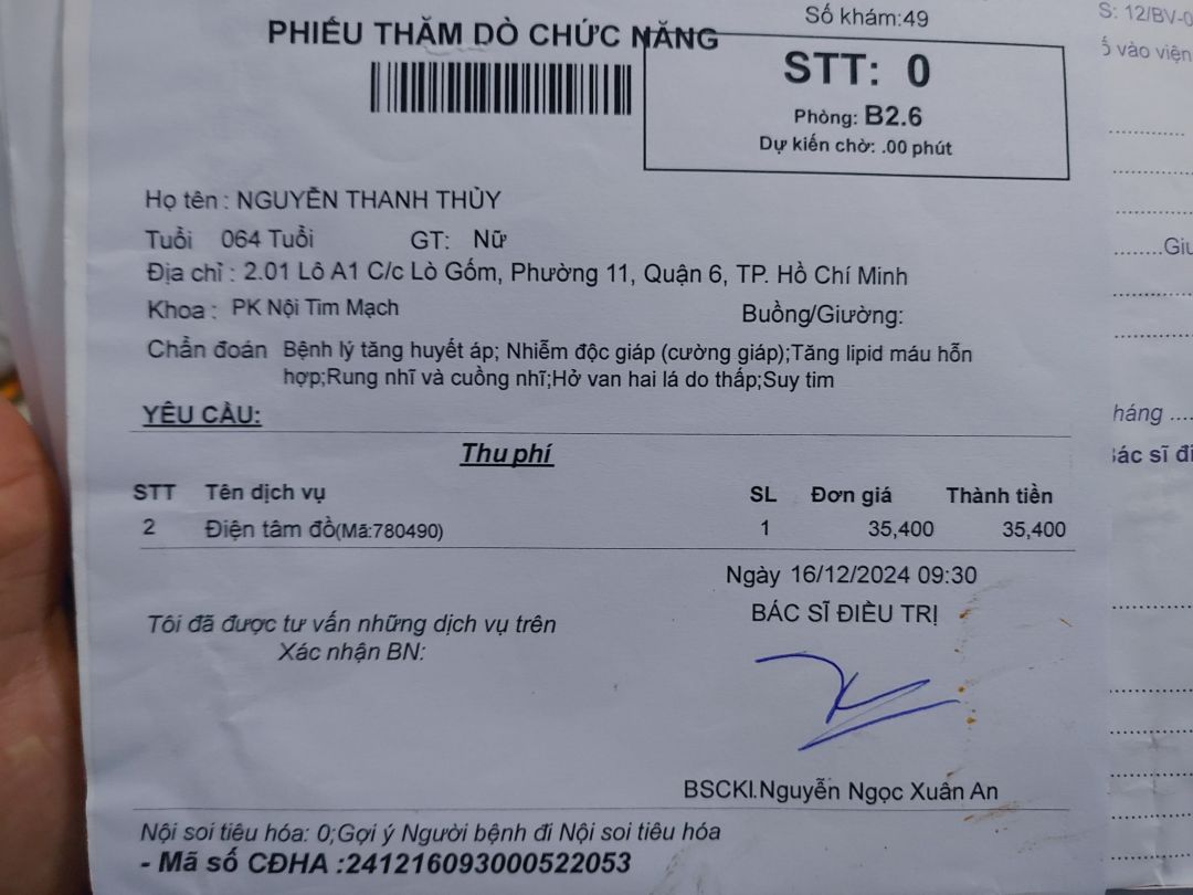 Cô bị bệnh tim, và cường giáp nên không thể làm gì được, đi lại nhiều quá cũng mệt...