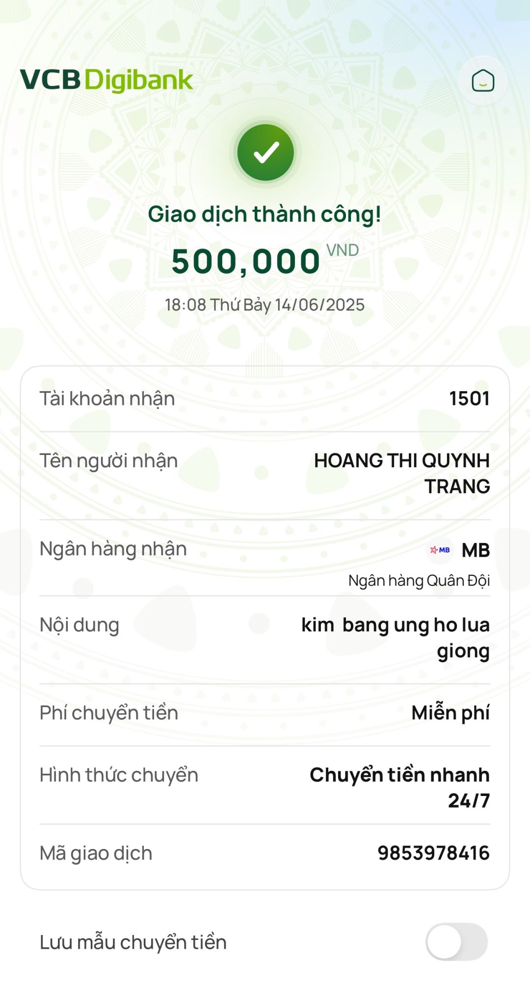 Mình xin góp 500k, đã chuyển tiền vào quỹ ạ!