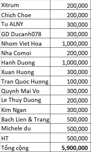 LƯU Ý: Quý mạnh thường quân, nhà hảo tâm nếu em có ghi thiếu sót tên và số tiền xin báo lại để em kiểm tra nhé💗