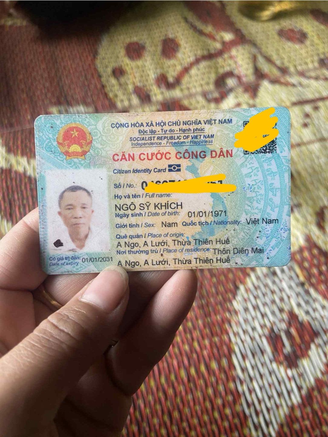 Em xin giới thiệu gia đình ông Ngô Sĩ Khích sinh năm 1971, trú tại thôn Diên Mai - xã A Ngo, huyện A Lưới, Huế