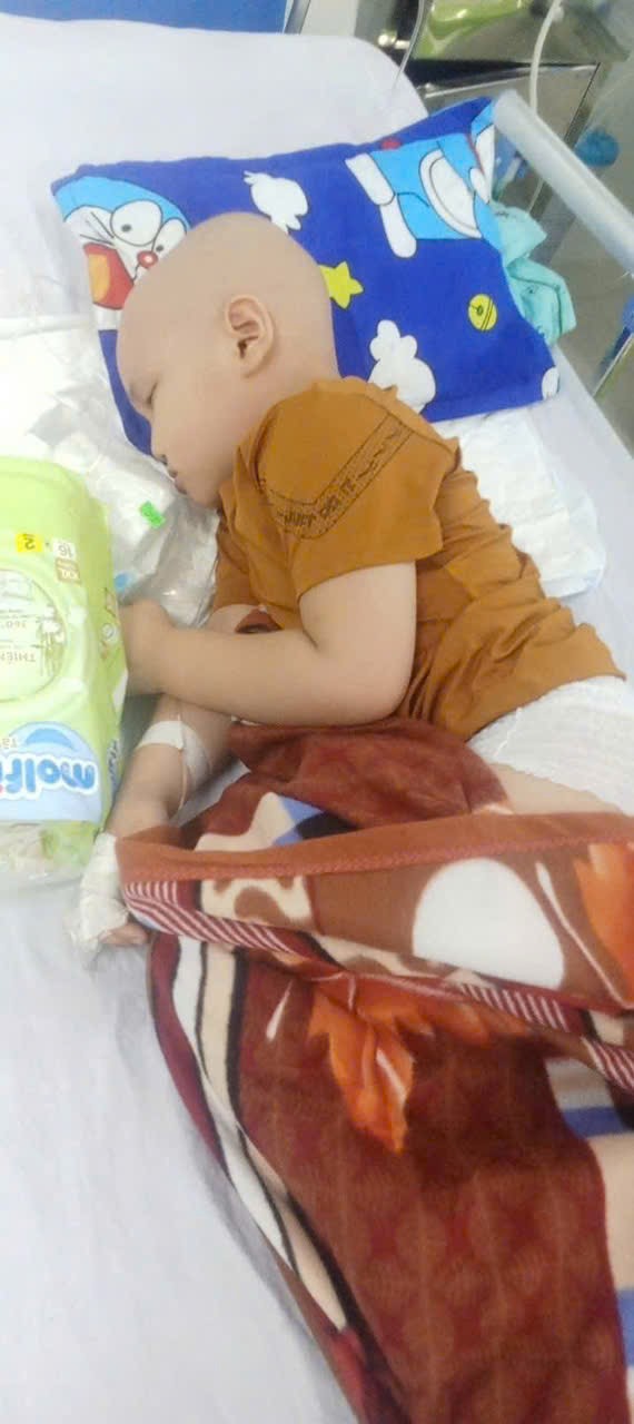 Tuy nhiên, gần đây vào hôm chủ nhật ngày 20/07 khi đang chơi cháu lên cơn co giật, tím tái sùi bọt mép, miệng cứng đờ, khó thở, gia đình lập tức sơ cứu và đưa cháu vào BV Huyện ở Bồng Sơn. Ở BV Bồng Sơn cho chuyển viện lập tức đến BV Đa Khoa Tỉnh Bình Định (cũ). Hiện cháu đang được nằm ở phòng hồi sức tích cực ở đây cũng 3 hôm rồi, tình trạng của cháu thấy càng chuyển biến nặng, bác sĩ báo ở đây không đủ thiết bị máy móc và không có thuốc cho bệnh của cháu, có đề xuất chuyển cháu đi BV Ung Bướu ở Sài Gòn để chuẩn đoán và điều trị nhưng sức khỏe cháu hiện tại yếu đi nhiều, khả năng mất rất cao nếu trung chuyển bằng xe cấp cứu vào Sài Gòn nên hiện tại cho cháu nằm lại để theo dõi.