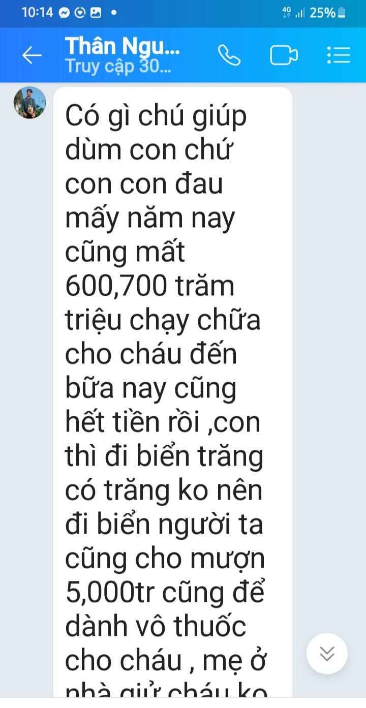 Tới lúc con nhập viện cũng mượn tạm bà con xung quanh tạm thời lo được tiền tạm ứng cho con và phòng thêm được 6-7 triệu dự kiến tiền xe cấp cứu để đưa con đi Sài Gòn nếu con khỏe hơn (cập nhật lại không phải là 20triệu như bài giới thiệu)