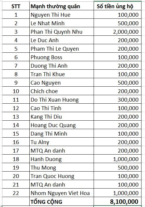 Loannguyen cập nhật ủng hộ đến hiện tại của MQT gần xa cho đám tang bà Kẩ Y như bên dưới. Xin cảm ơn cả nhà chung tay ạ !